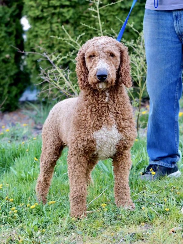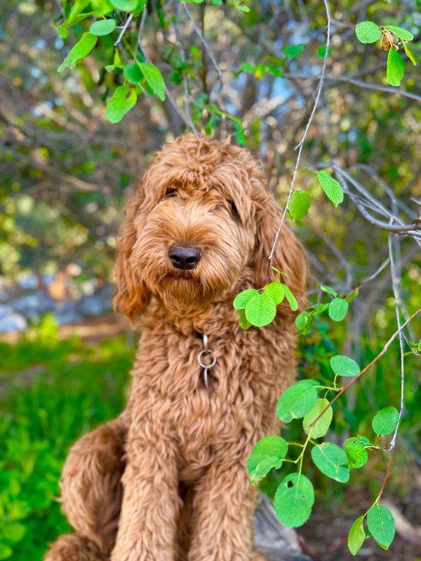 Taffy is an F1b goldendoodle, she has a wonderful mellow temperament. Very intelligent, loyal and loving family dog. She Loves spending time hiking and exploring, or just hanging out with the family. She has a clear genetic panel. Taffy weighs 50lb.